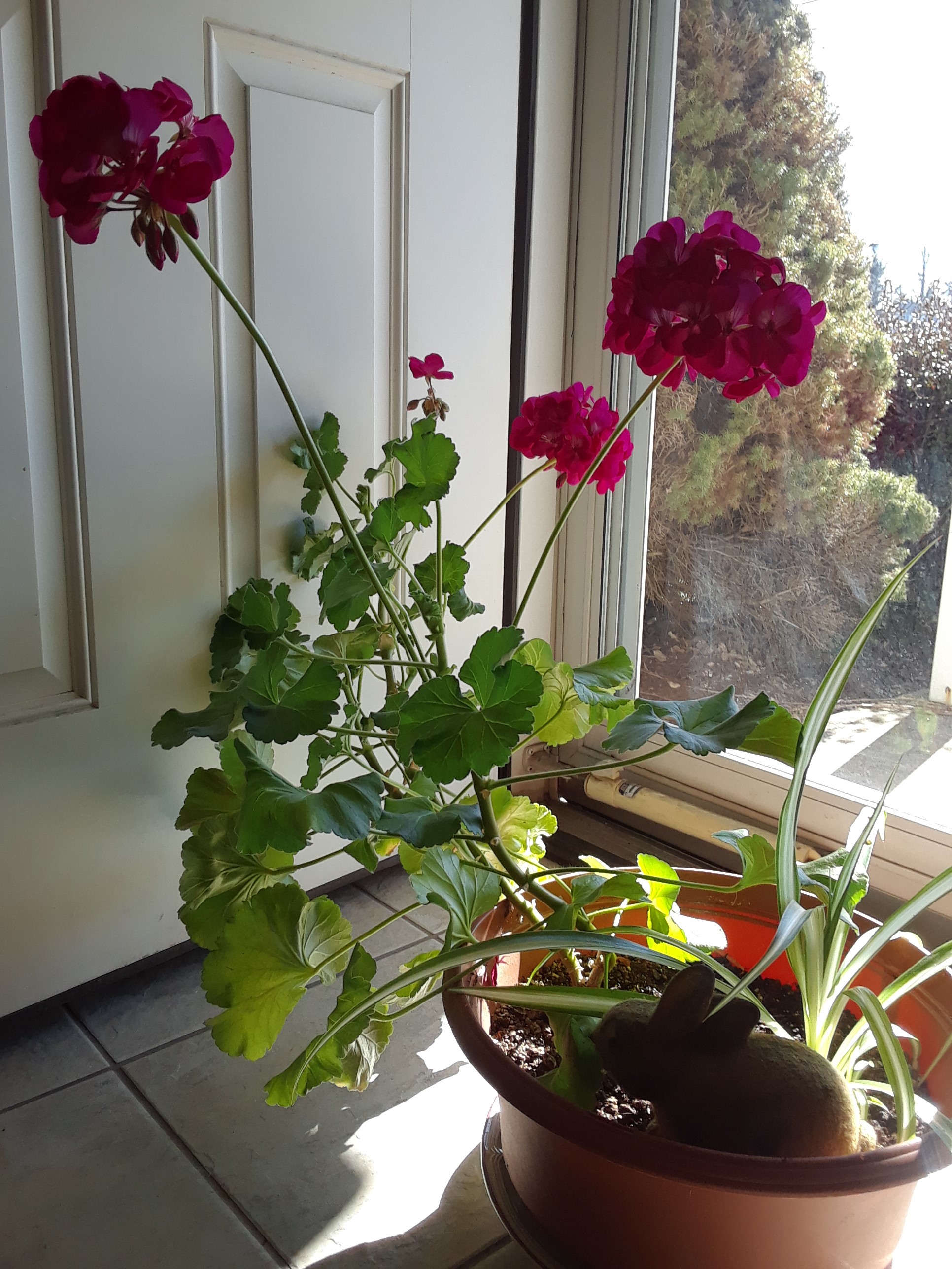 Do you see the Harry the rabbit sitting in the geraniums? OK—it’s not a very wild animal. In fact, it’s not even real. But this reminds me how my geraniums actually were eaten by wild animals last year.