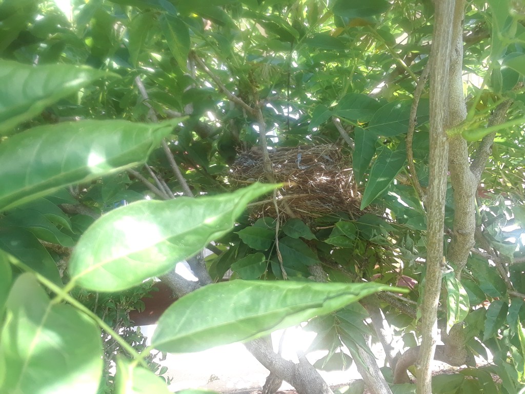 Now there’s another ending to the story. A robin family also enjoyed the abundant growth of my wisteria. They nested deep within the foliage. Just two days before they fledged, I saw the nest. More joy in my life. Thank you God.