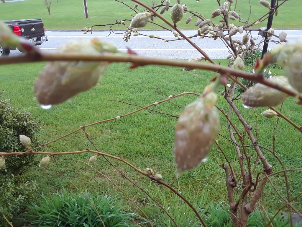 All looked wonderful until an unusually cold night in April zapped all those baby clusters. How could that be? I was sure that wisterias were frost-proof. Research showed that only the roots could survive a frost, but not those soon-to-open buds. Alas, my husband’s potato plants were likewise frost nipped. Eventually, his potatoes re-emerged. However, I gave up hope for my 2020 wisteria season. I stopped looking at the bush as it sent out those annoying shoots.